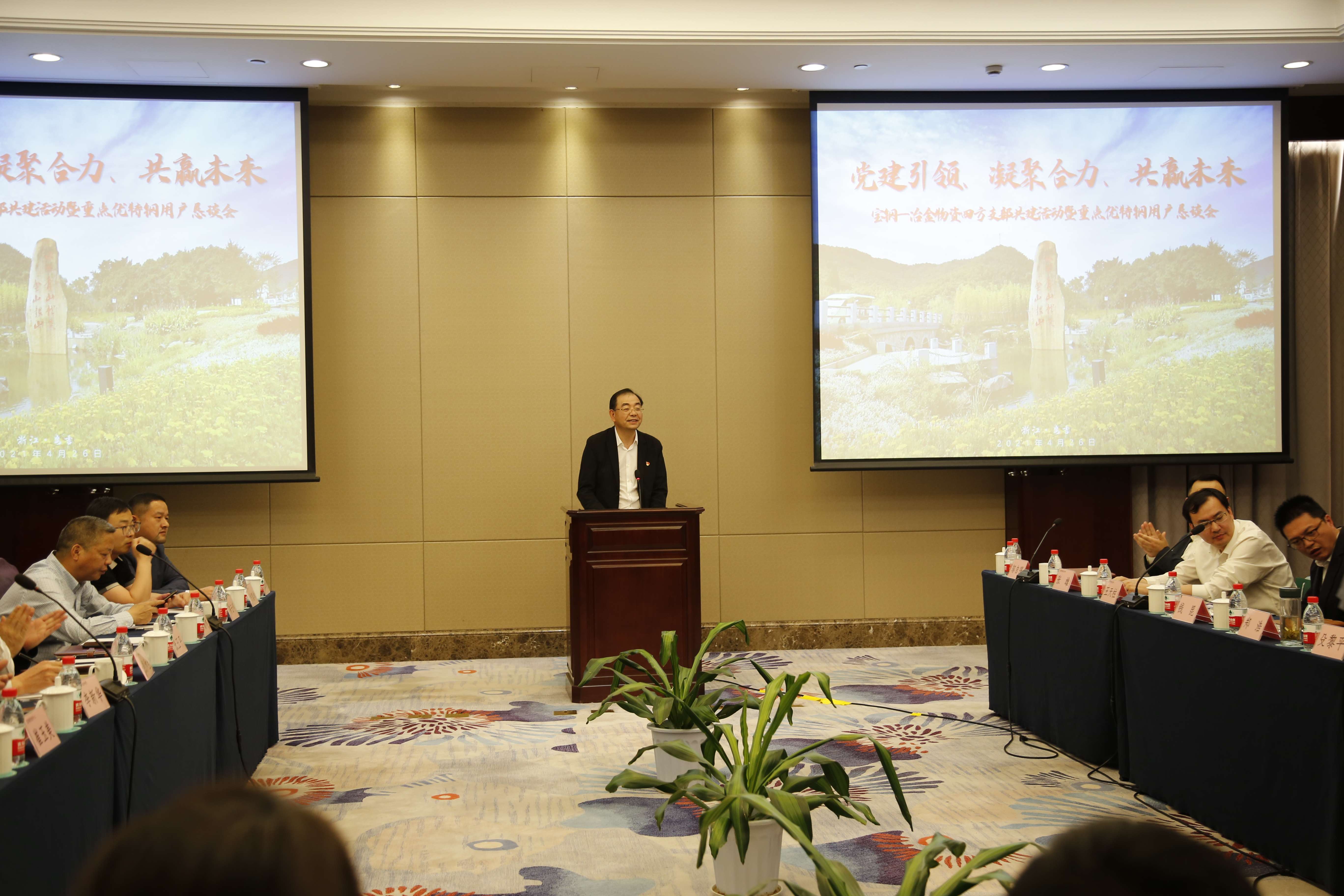 4月26日下午,冶金物資第一黨支部和寶鋼營(yíng)銷(xiāo)中心熱板與工程材料銷(xiāo)售部黨支部、寶鋼鋼貿(mào)公司第一黨支部、梅鋼制造管理部產(chǎn)品制造黨支部開(kāi)展結(jié)對(duì)共建交流活動(dòng),并在杭鋼集團(tuán)公司黨委副書(shū)記殳黎平,梅鋼副總經(jīng)理聞發(fā)平、總經(jīng)理助理程乃良及冶金物資、寶鋼營(yíng)銷(xiāo)中心、寶鋼鋼貿(mào)、梅鋼等相關(guān)領(lǐng)導(dǎo)和供應(yīng)鏈終端重點(diǎn)客戶(hù)代表60余人見(jiàn)證下簽訂四方支部共建合作協(xié)議書(shū)。